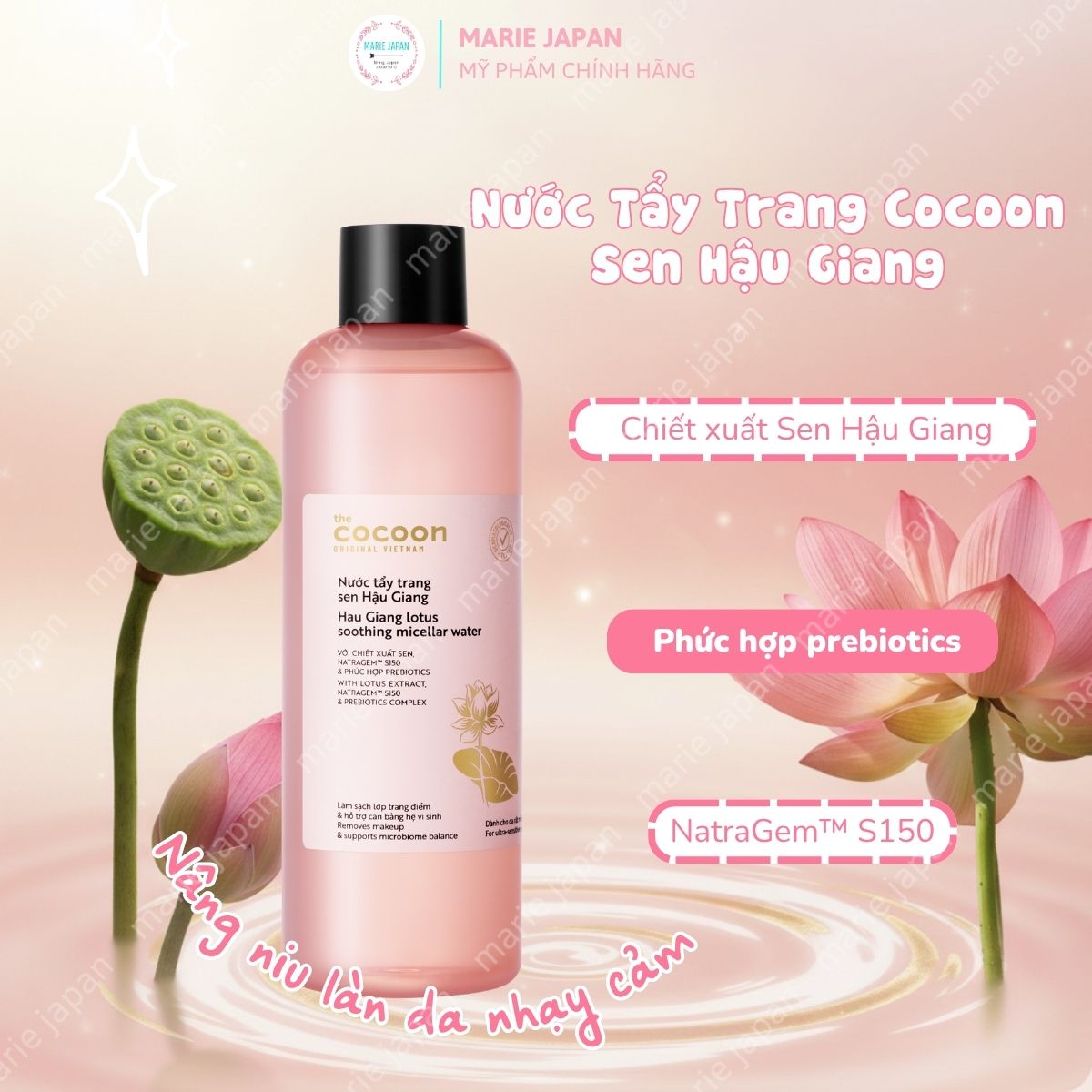 Nước Tẩy Trang Sen Hậu Giang Cocoon Sạch Bụi Bẩn Siêu Mịn Dịu Êm Cho Da Rất Nhạy Cảm 500ml