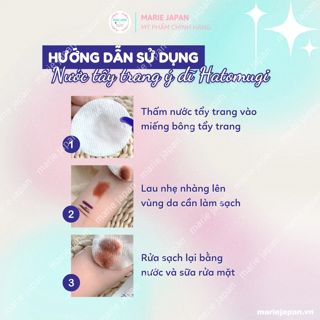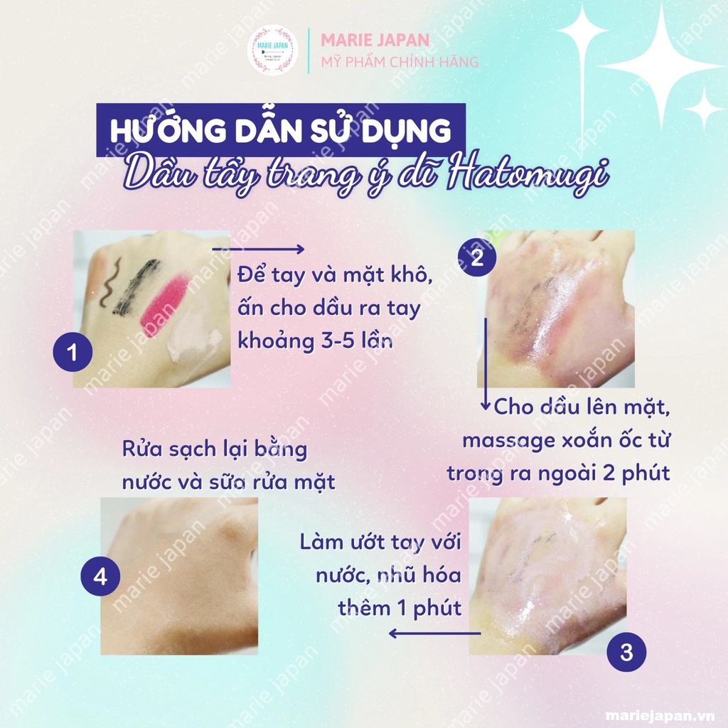 Tẩy trang Hatomugi có cách sử dụng đơn giản, dễ thực hiện. Dưới đây là 2 cách đối với 2 phân loại khác nhau.