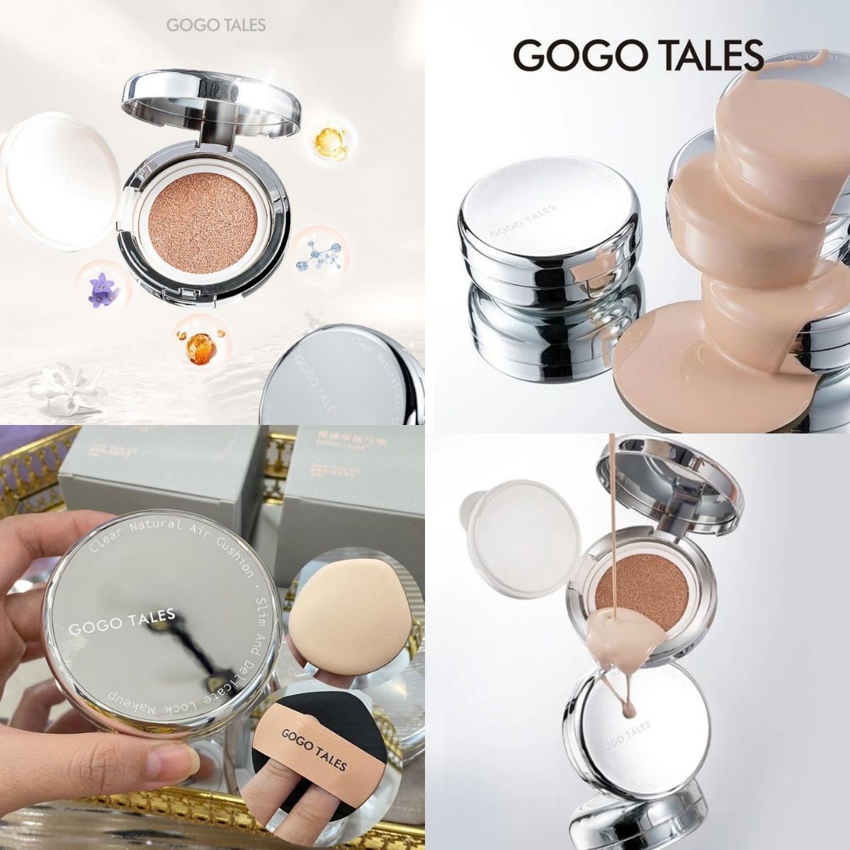 Phấn nước GOGO TALES hộp bóng bạc sang chảnh, thời thượng với chất kem mỏng mịn, thân thiện với làn da, khả năng che phủ tuyệt vời khiến da trở nên mịn màng không tì vết ngay tức thì mà không cần dùng đến kem che khuyết điểm.