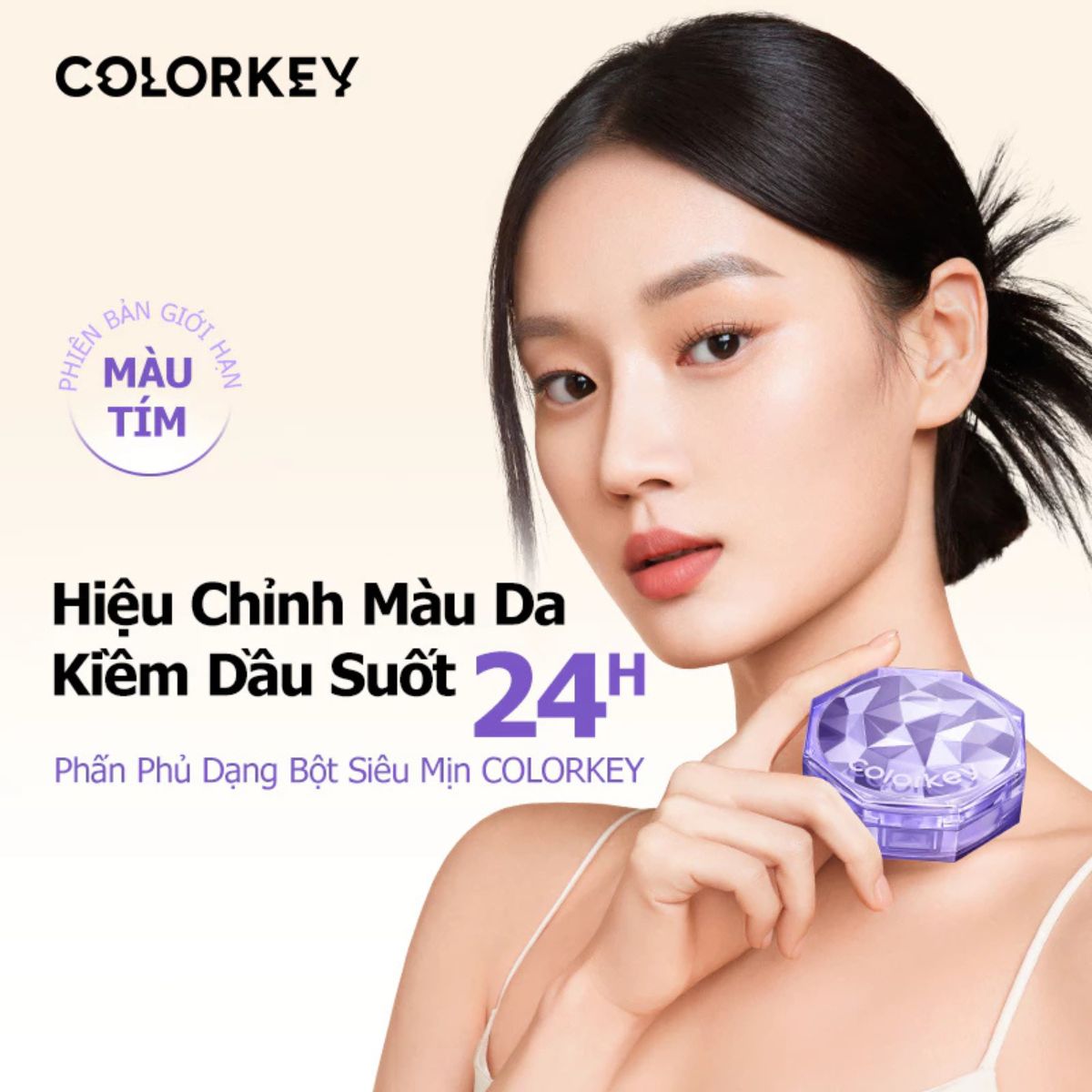 Phấn Phủ Colorkey Lasting Naturally Kiềm Dầu Siêu Mịn Giúp Lớp Trang Điểm Tự Nhiên Hộp 8g