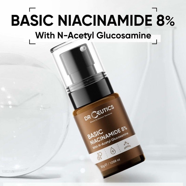 - Serum DrCeutics DrCeutics Basic Niacinamide 8% là tinh chất với sự kết hợp độc đáo giữa các thành phần như Niacinamide, Acetyl Glucosamine, Kẽm PCA và các chiết xuất từ thực vật như chiết xuất wasabi, chiết xuất củ tỏi giúp tăng cường khả năng làm sáng da, kiềm dầu và thu nhỏ lỗ chân lông, củng cố hàng rào bảo vệ da cho làn da sáng khỏe, mịn màng.