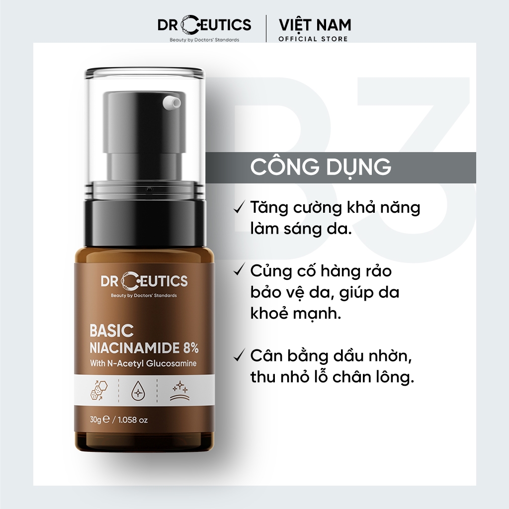 Serum DrCeutics B3 Basic Niacinamide 8% Sáng Da Mờ Thâm