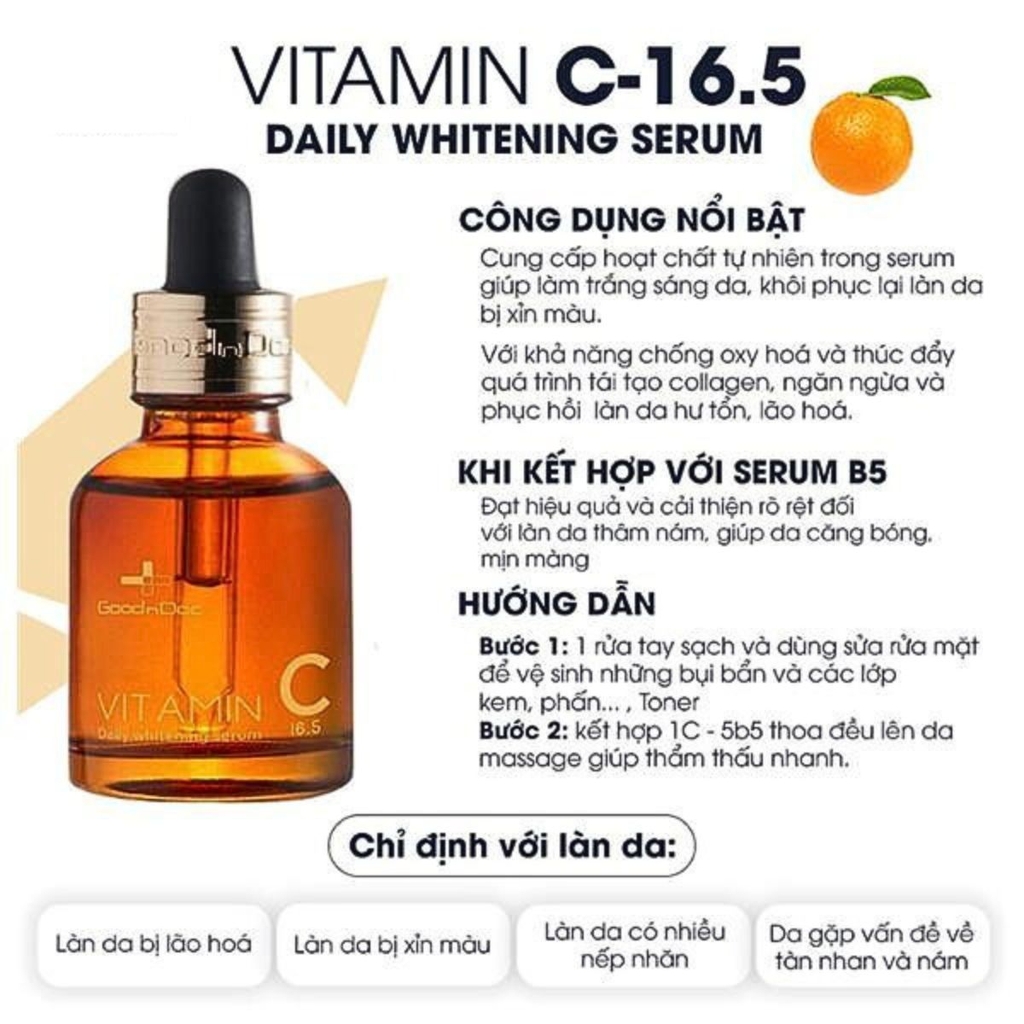 - Với người dùng Vitamin C lần đầu thì nên mix với serum GoodnDoc Hydra B5 theo tỉ lệ 1:5 hoặc 2:5.