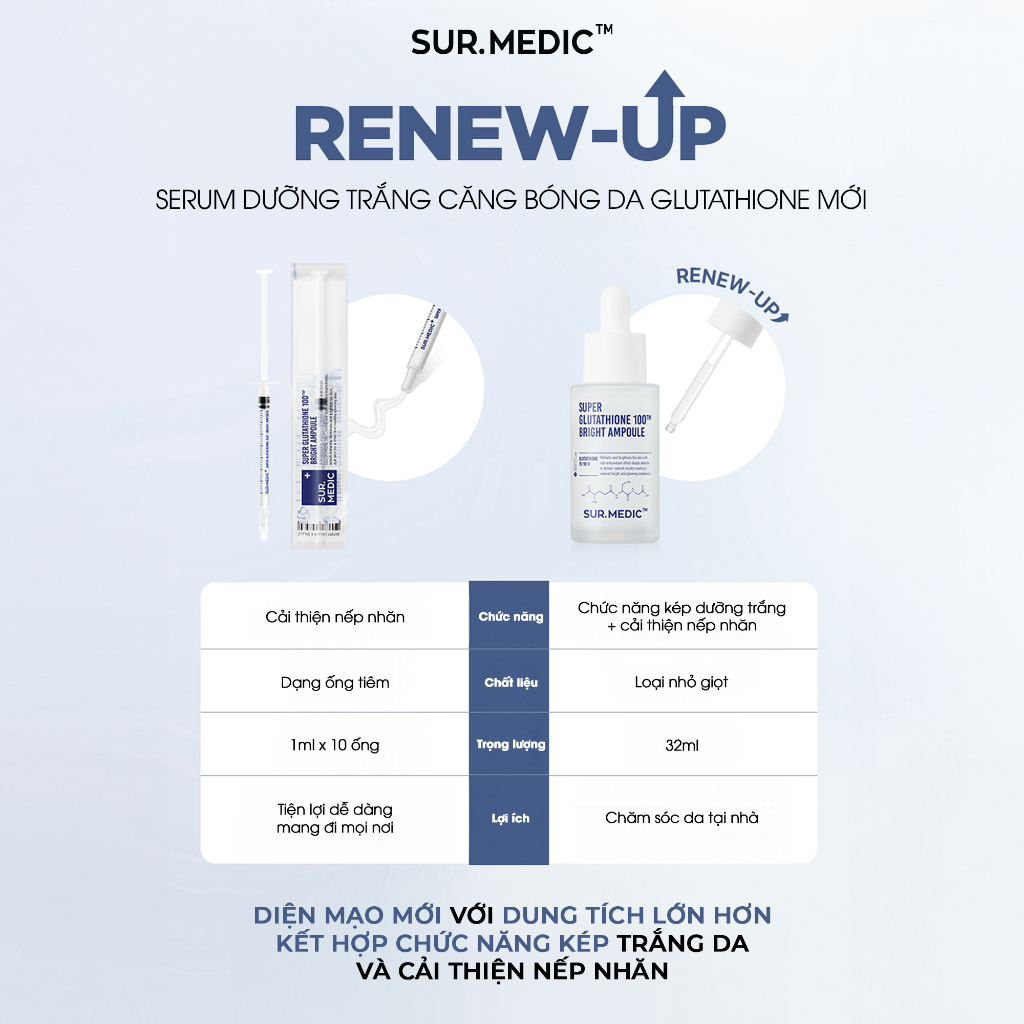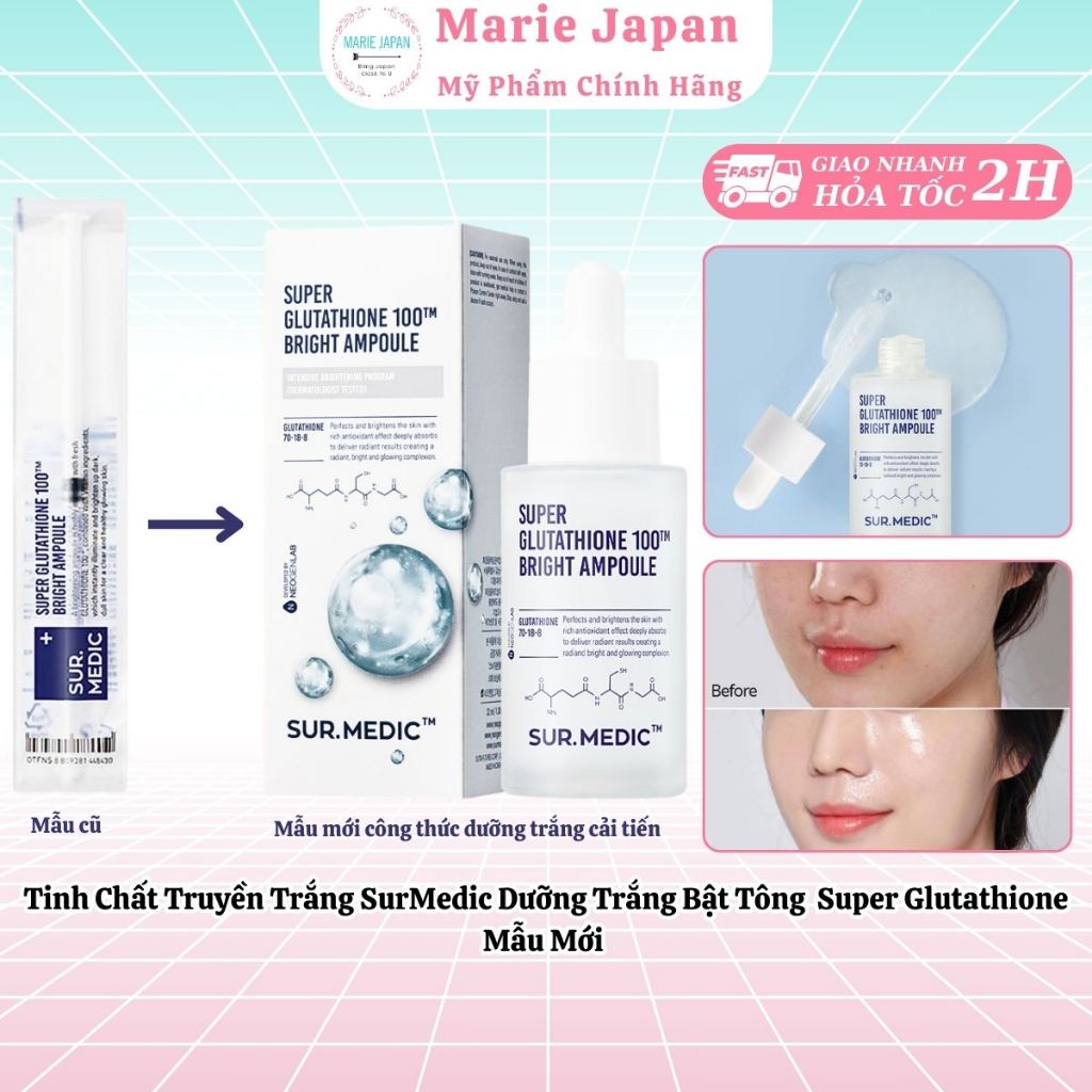 Tinh Chất Truyền Trắng Sur.Medic Dưỡng Trắng Bật Tông Super Glutathione Bright Ampoule Mẫu Mới