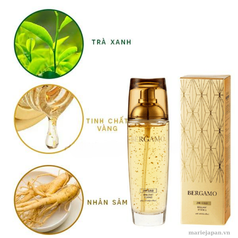 Tinh chất serum dưỡng trắng Bergamo Essence Hàn Quốc có những thành phần có lợi cho da, hỗ trợ giúp da trắng sáng. Thành phần gồm: