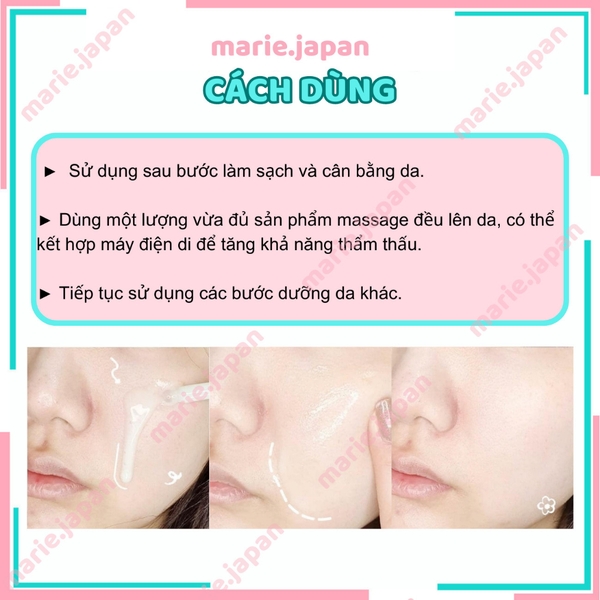 - Sử dụng sau bước làm sạch và cân bằng da.