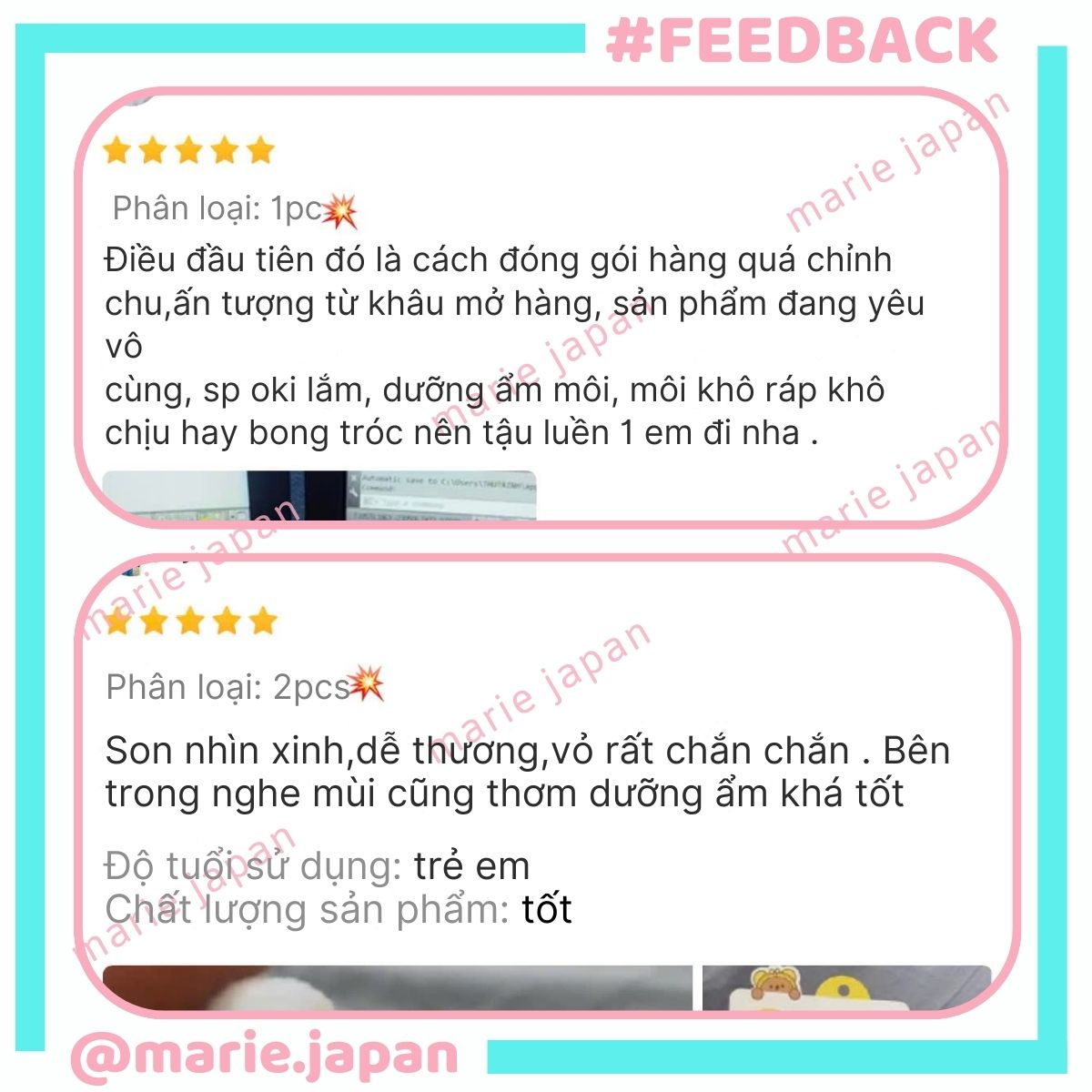 ❤ MARIE JAPAN xin cảm ơn quý khách đã tin tưởng và sử dụng sản phẩm của shop. Shop sẽ không ngừng cải tiến, mang lại những dòng sản phẩm và dịch vụ tốt nhất đến tay khách hàng! ❤️