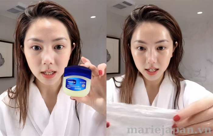 Những loại mascara chống thấm nước tuy rất đẹp nhưng lại vô cùng cứng đầu. Để giảm thiểu lớp trang điểm này, bạn chỉ cần lấy một chút sáp dưỡng Vaseline lên bông tẩy trang rồi quệt thật nhẹ lên bầu mắt theo chiều từ trên xuống dưới.