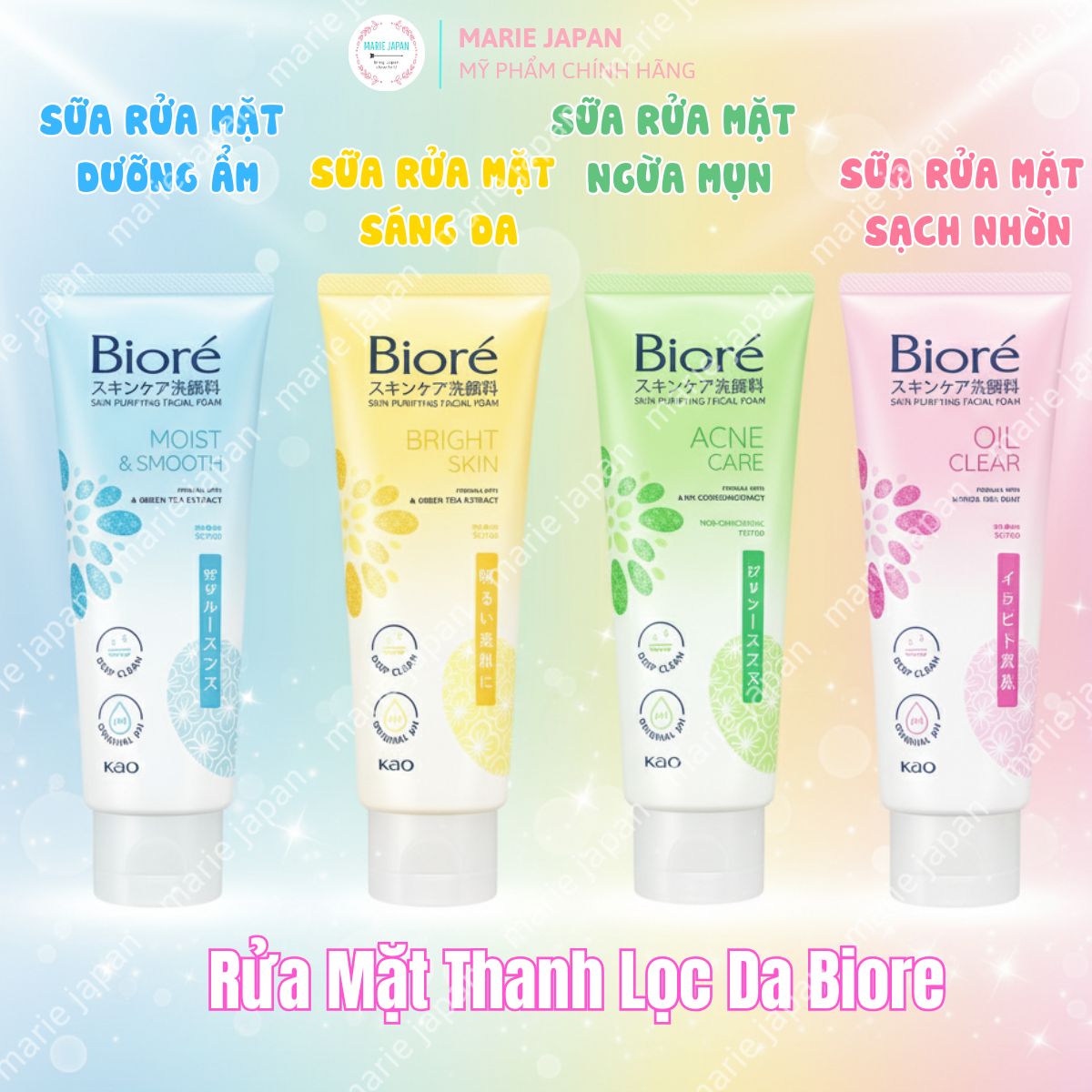 Sữa Rửa Mặt Thanh Lọc Da Biore Sạch Nhờn Dưỡng Ẩm Sáng Da Ngăn Ngừa Mụn Skin Purifying Facial Foam Nhật Bản