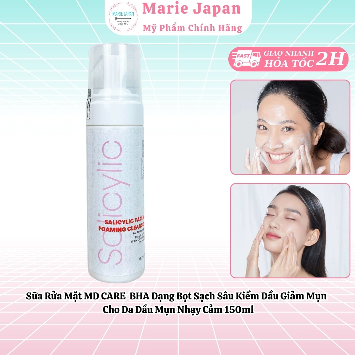 Sữa Rửa Mặt MD CARE BHA Dạng Bọt Sạch Sâu Kiềm Dầu Giảm Mụn Cho Da Dầu Mụn Nhạy Cảm 150ml