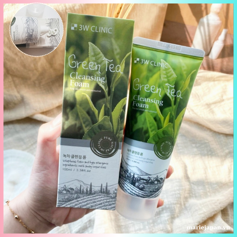 Sữa rửa mặt 3W Clinic Hàn Quốc có thành phần chính như là trà xanh, nhân sâm, lúa mạch, linh chi,...mang lại hiệu quả chăm sóc da vượt trội, hiệu quả và lành tính cho các nàng.