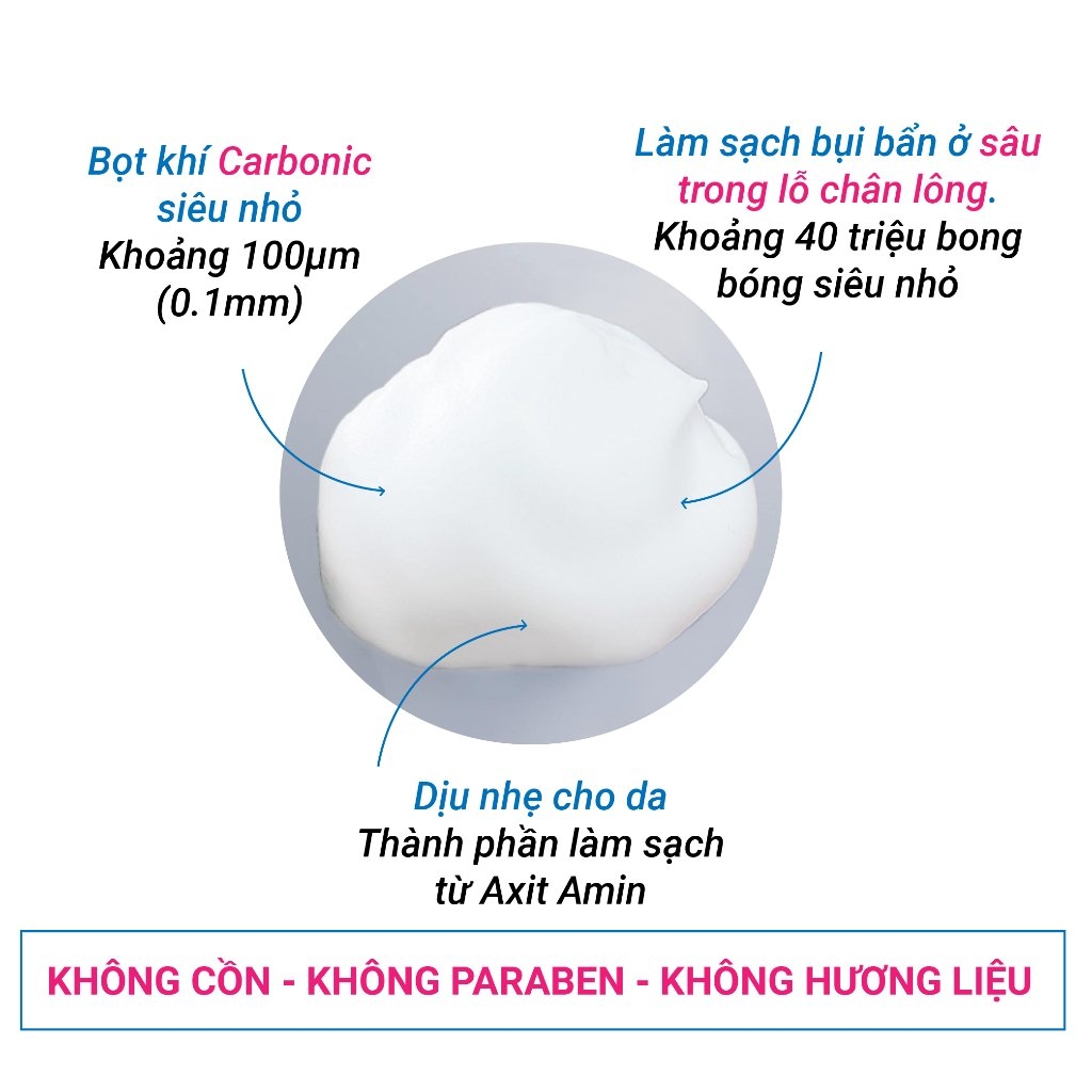 - DỊU NHẸ TRÊN DA: Chứa thành phần làm sạch Axit Amin. Không cần chà mạnh trên da nhờ bọt khí Carbonic siêu nhỏ dày mịn, ngăn mụn và dưỡng ẩm da.