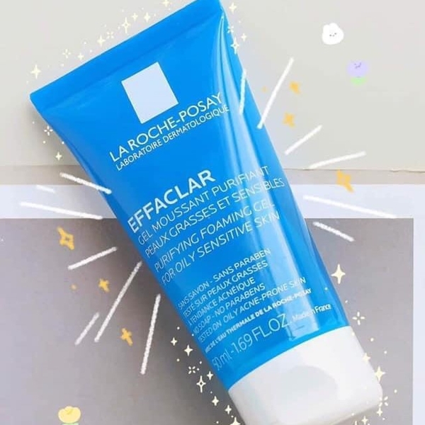 Gel rửa mặt tạo bọt làm sạch & giảm nhờn cho da dầu nhạy cảm La Roche-Posay Effaclar Purifying Foaming Gel 50ml sẽ giúp ngăn ngừa và hỗ trợ điều t.rị mụn tối đa với kết cấu dạng gel trong dễ dàng tạo bọt cùng công thức không chứa dầu, không cồn, an toàn cho làn da. Sản phẩm nhẹ nhàng làm sạch da từ sâu trong lỗ chân lông, loại bỏ bụi bẩn cùng dầu thừa, đồng thời giữ độ pH luôn ở mức cân bằng 5.5 nên sau khi rửa mặt xong, da không hề khô rít, căng rát, mà vẫn mềm mịn, sạch thoáng và đầy sức sống.