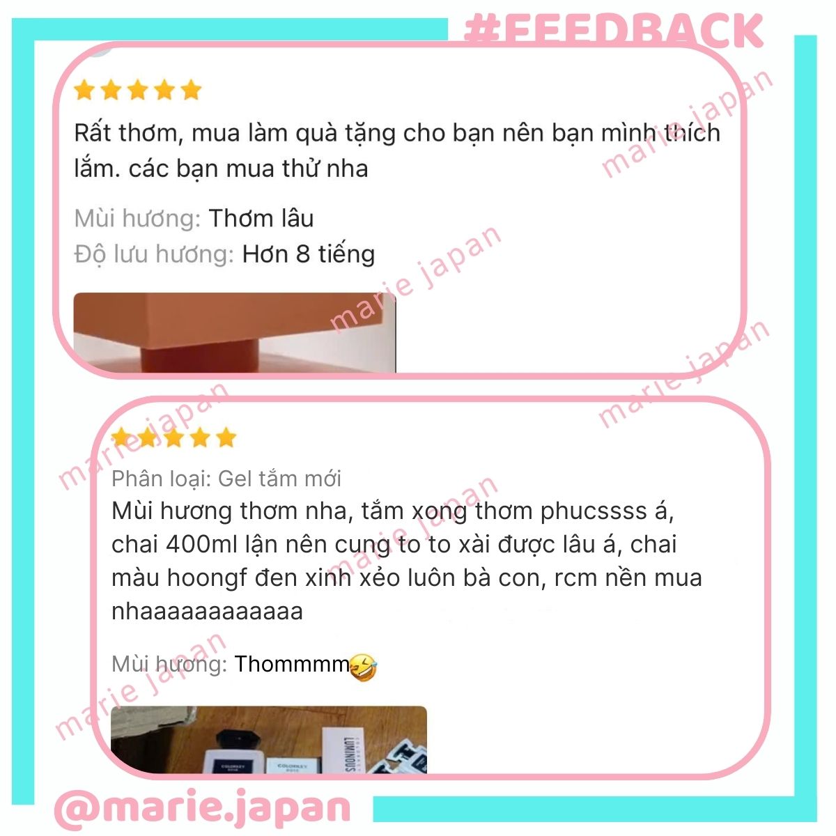 ❤ MARIE JAPAN xin cảm ơn quý khách đã tin tưởng và sử dụng sản phẩm của shop. Shop sẽ không ngừng cải tiến, mang lại những dòng sản phẩm và dịch vụ tốt nhất đến tay khách hàng! ❤️