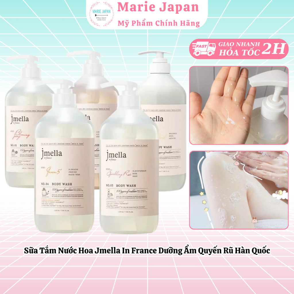 Sữa tắm nước hoa Jmella In France là sản phẩm nổi bật đến từ Hàn Quốc. Được sản xuất bởi nhà điều chế nước hoa Argeville của Pháp, Jmella In France mang đến hương thơm tinh tế như những tầng hương sang trọng của các dòng nước hoa Pháp, lưu lại trên da suốt cả ngày dài.