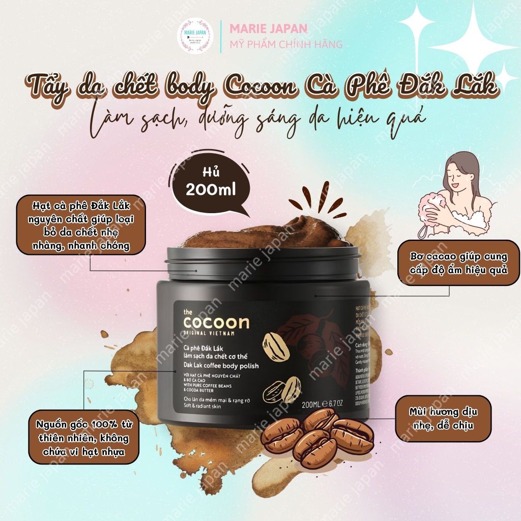 Tẩy Da Chết Body Cocoon Cà Phê Đắk Lắk Làm Sạch Sáng Da Coffee Body Polish