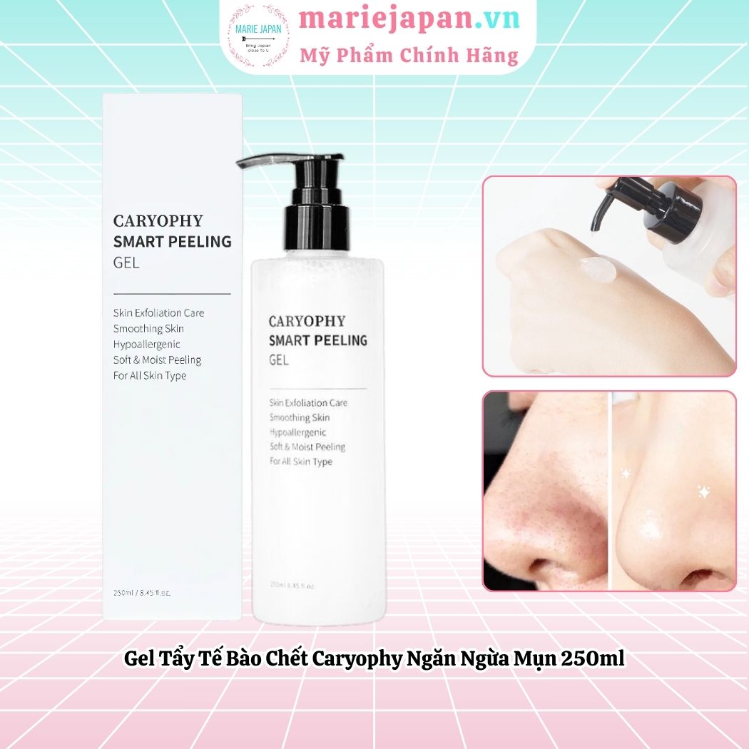 Gel tẩy da chết Caryophy là sản phẩm tẩy tế bào chết da mặt đến từ thương hiệu mỹ phẩm Caryophy của Hàn Quốc. Công thức dạng gel nước mỏng nhẹ, giúp loại bỏ tế bào chết, bụi bẩn và bã nhờn từ mọi ngóc ngách, làm thông thoáng lỗ chân lông, hạn chế nguy cơ bít tắc gây mụn. Bên cạnh đó, bộ đôi chiết xuất rau má và rau sam giúp tăng cường ngăn khuẩn, chống viêm, làm dịu da, giảm kích ứng. Đặc biệt, thành phần đã được kiểm nghiệm, an toàn cho làn da nhạy cảm nhất: không cồn khô, không hương liệu, không paraben, không dầu khoáng.