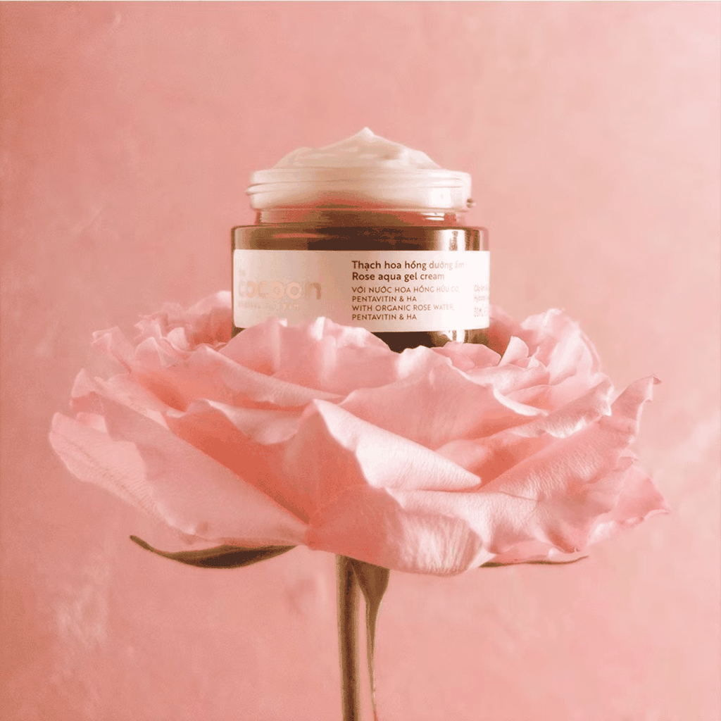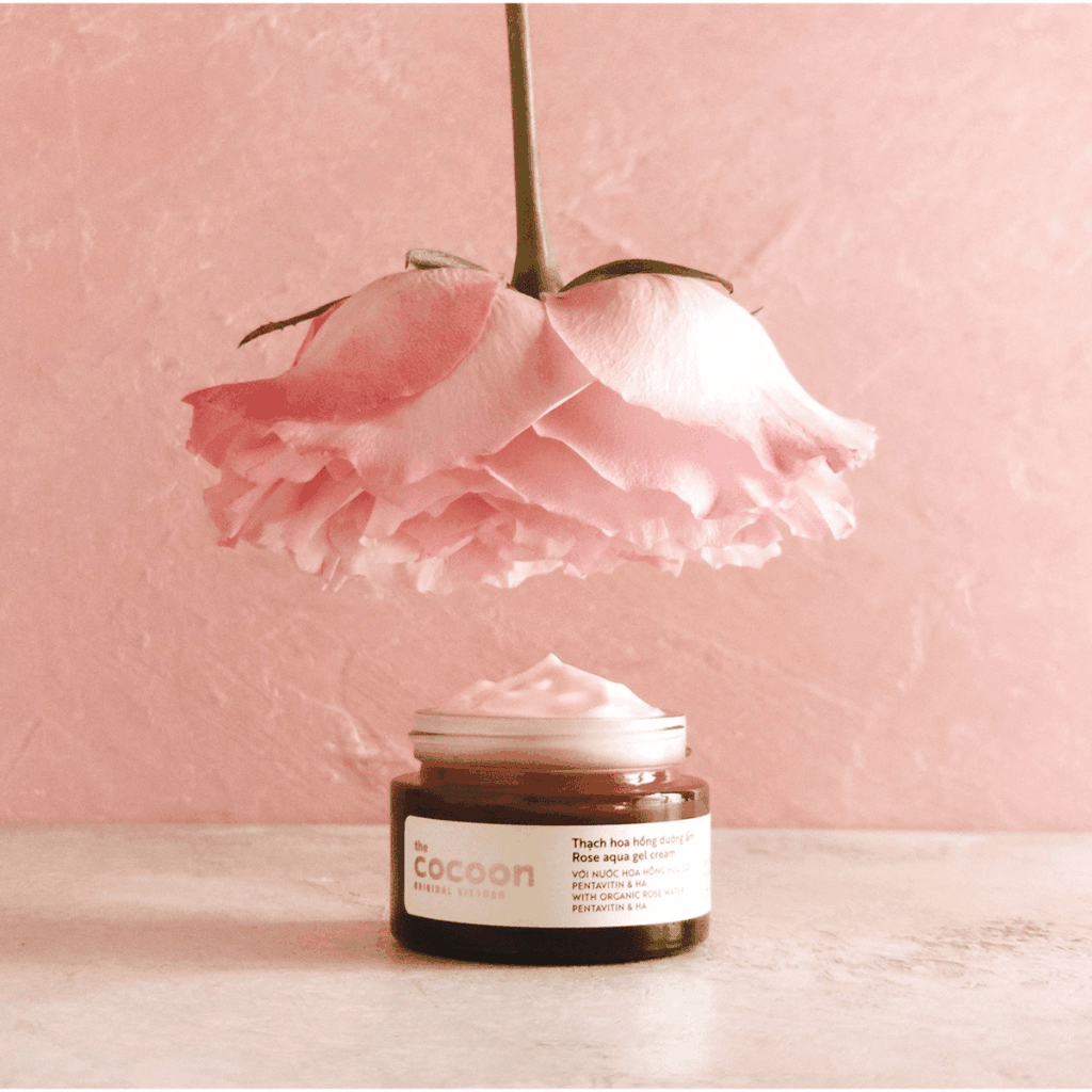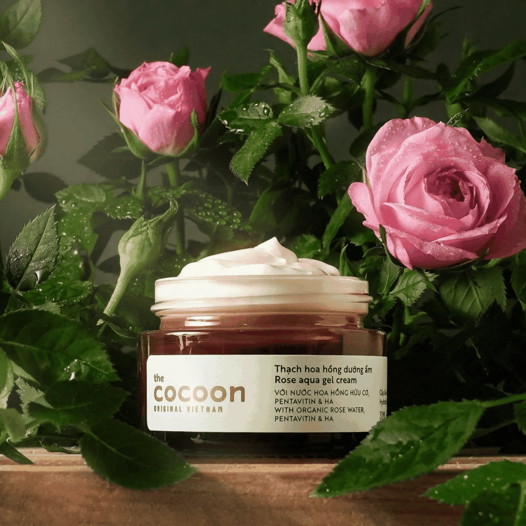 - Chiết xuất hoa hồng hữu cơ (Organic Rose Hydrosol): Nước hoa hồng có tính năng làm se và làm mềm da, đồng thời chống oxy hóa hiệu quả. Được chiết xuất từ những đóa hồng Damask mọc ở vùng cao nguyên đá vôi Cao Bằng, thạch hoa hồng dưỡng ẩm Cocoon không chỉ giúp da dịu mát mà còn ngăn ngừa dấu hiệu lão hóa, mang đến làn da sáng mịn và đều màu.