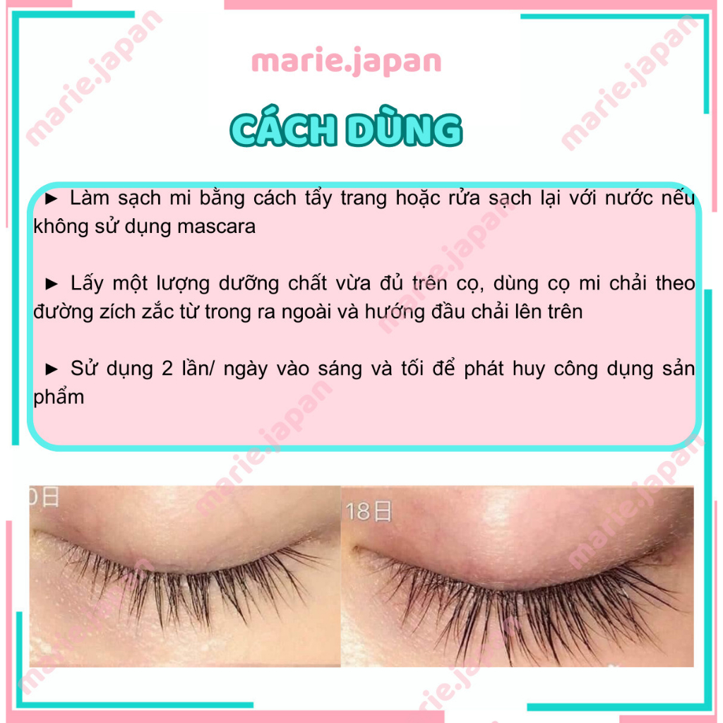 – Sử dụng hàng ngày trước khi đi ngủ, chuốt nhẹ nhàng từ gốc đến ngọn mi.