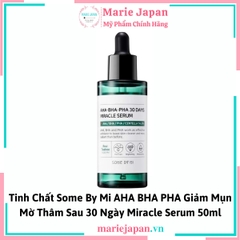 - Với thành phần chứa bộ 3 AHA-BHA-PHA có tác dụng cao trong việc cải thiện mụn, Tinh chất Some By Me AHA-BHA-PHA 30 Days Miracle Serum loại bỏ các tế bào chết giúp đánh bay các loại mụn cám, mụn đầu đen, mụn bọc sẽ nằm trong lòng bàn tay chỉ sau 30 ngày sử dụng kiên trì.