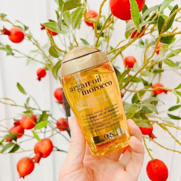 TINH DẦU DƯỠNG TÓC OGX BIOTIN RENEWING ARGAN OIL OF MOROCCO USA 100ML cung cấp dưỡng chất, vitamin E giúp tóc luôn mềm mượt, giảm khô rối, đứt gãy, tăng cường sức sống cho tóc. Sản phẩm phù hợp cho mọi loại tóc, không gây bết dính tóc và đặc biệt là có mùi thơm cực kỳ dễ chịu mà ai cũng thích