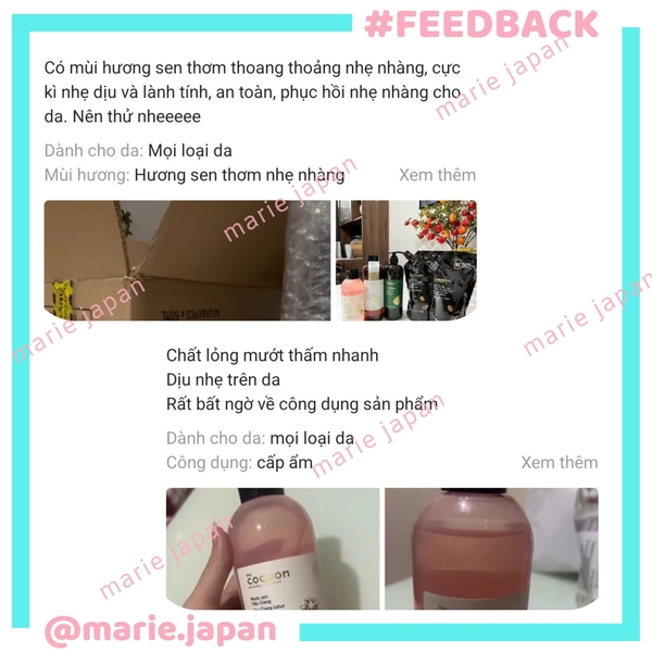 “Có mùi hương sen thơm thoang thoảng nhẹ nhàng, cực kì nhẹ dịu và lành tính, an toàn, phục hồi nhẹ nhàng cho da. Nên thử nheee.”