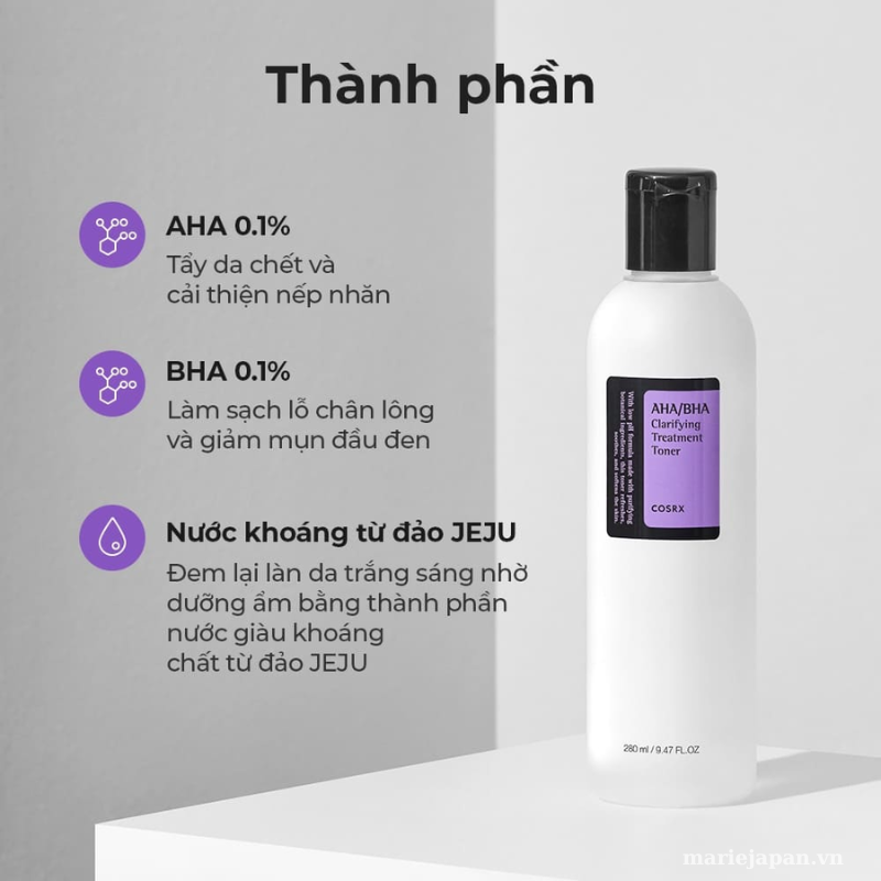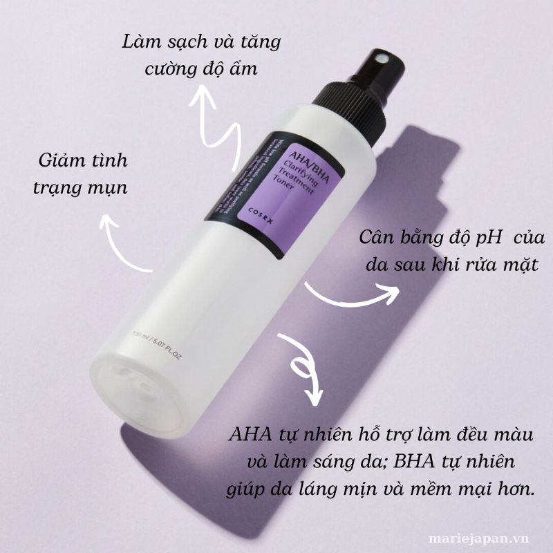 Nước hoa hồng là một sản phẩm giúp làm tăng hiệu quả tối đa của các sản phẩm dưỡng da khác. Ngoài ra, nhiều loại nước hoa hồng còn có tác dụng làm giảm mụn đầu đen hiệu quả. Marie giới thiệu với các chị "Nước Hoa Hồng Cosrx Tẩy Da Chết Hóa Học Giảm Mụn Đầu Đen AHA BHA". Nàng nào đang tìm kiếm một toner có thể trị mụn đầu đen thì không bỏ qua sản phẩm này nhé!