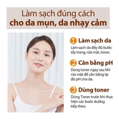Cách 1: Thấm 1 lượng toner vừa đủ vào bông tẩy trang và nhẹ nhàng lau khắp da mặt theo chiều cấu tạo da để lấy đi tạp chất còn tồn đọng trên da.