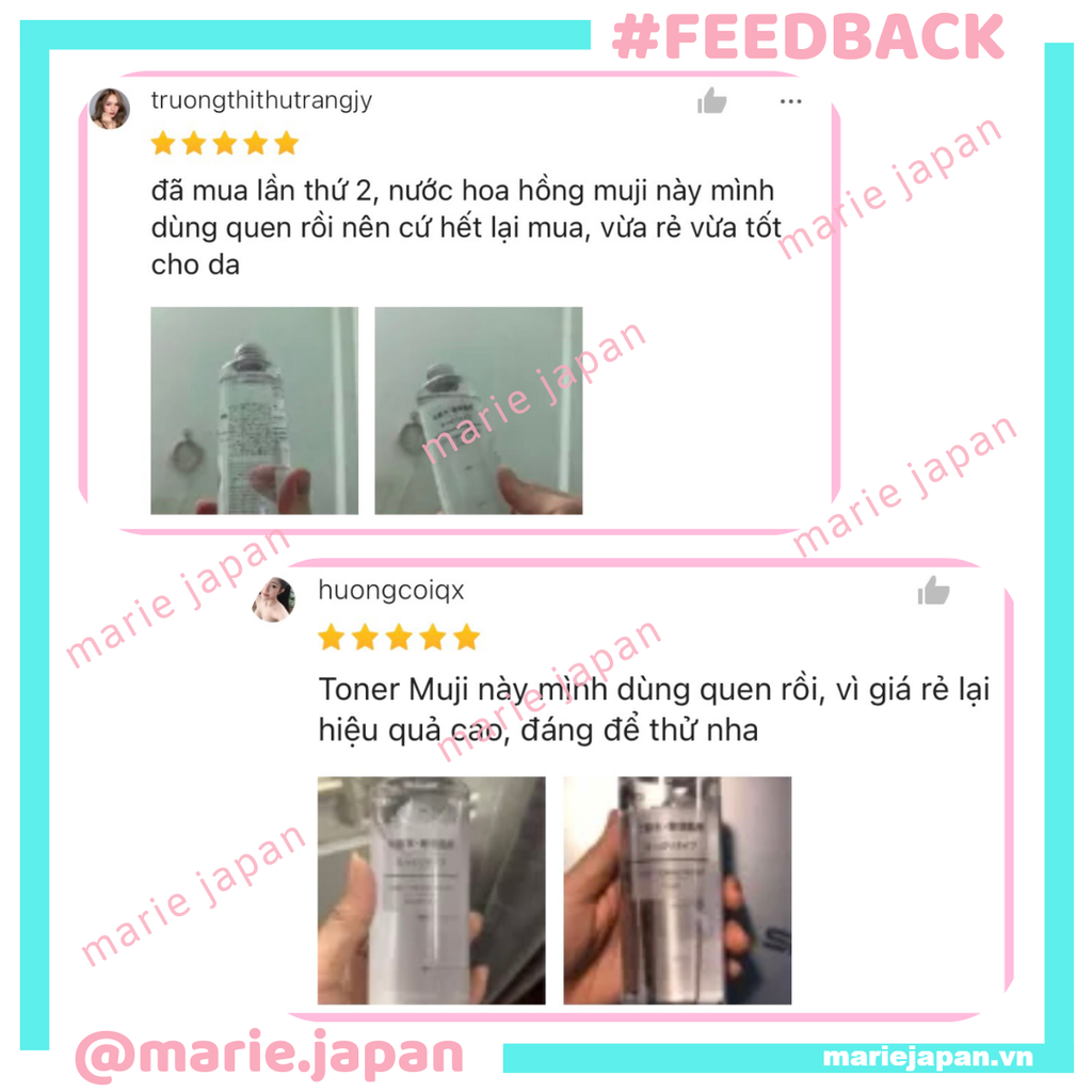 Trên đây là những thông tin về Toner Muji Nhật Bản. Marie hy vọng những thông tin trên hữu ích với các bạn. Nếu có thắc mắc về sản phẩm thì nhắn ngay cho Marie để được tư vấn. Nếu muốn sở hữu làn da ẩm mịn thì mua ngay toner Muji chính hãng giá tốt tại Marie Japan nhé!