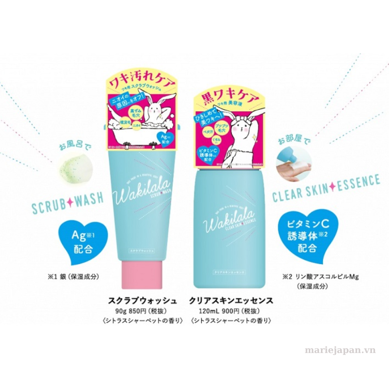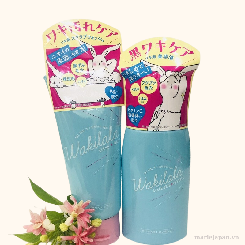 Hiện tại nhà Marie có combo mờ thâm trắng da vùng nách Wakilala gồm một tuýp kem tẩy da chết và một tinh chất dưỡng trắng.
