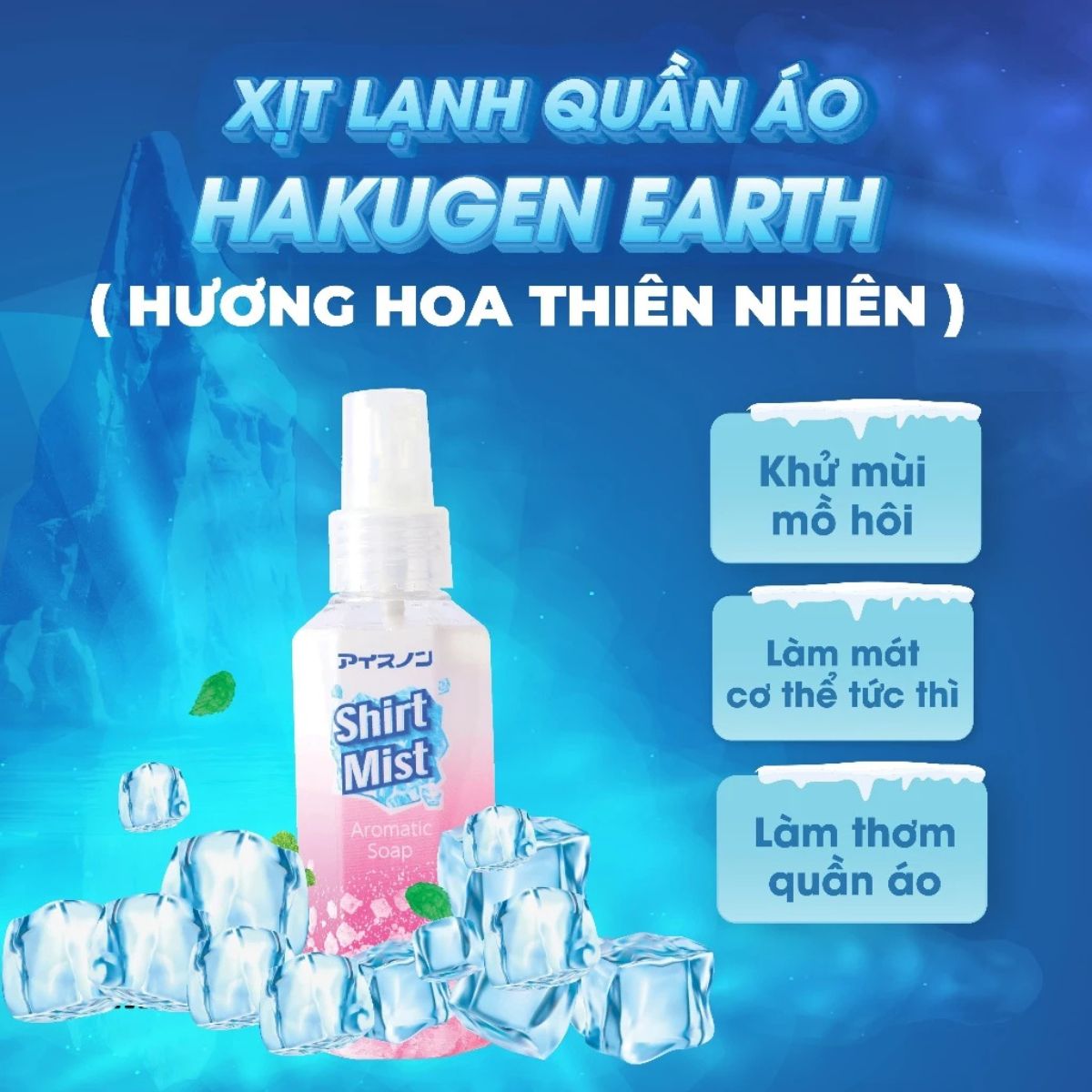 Xịt Lạnh Quần Áo Hakugen Earth Ice Non Siêu Mát Lạnh Khử Mùi Hôi Nhật Bản 100ml